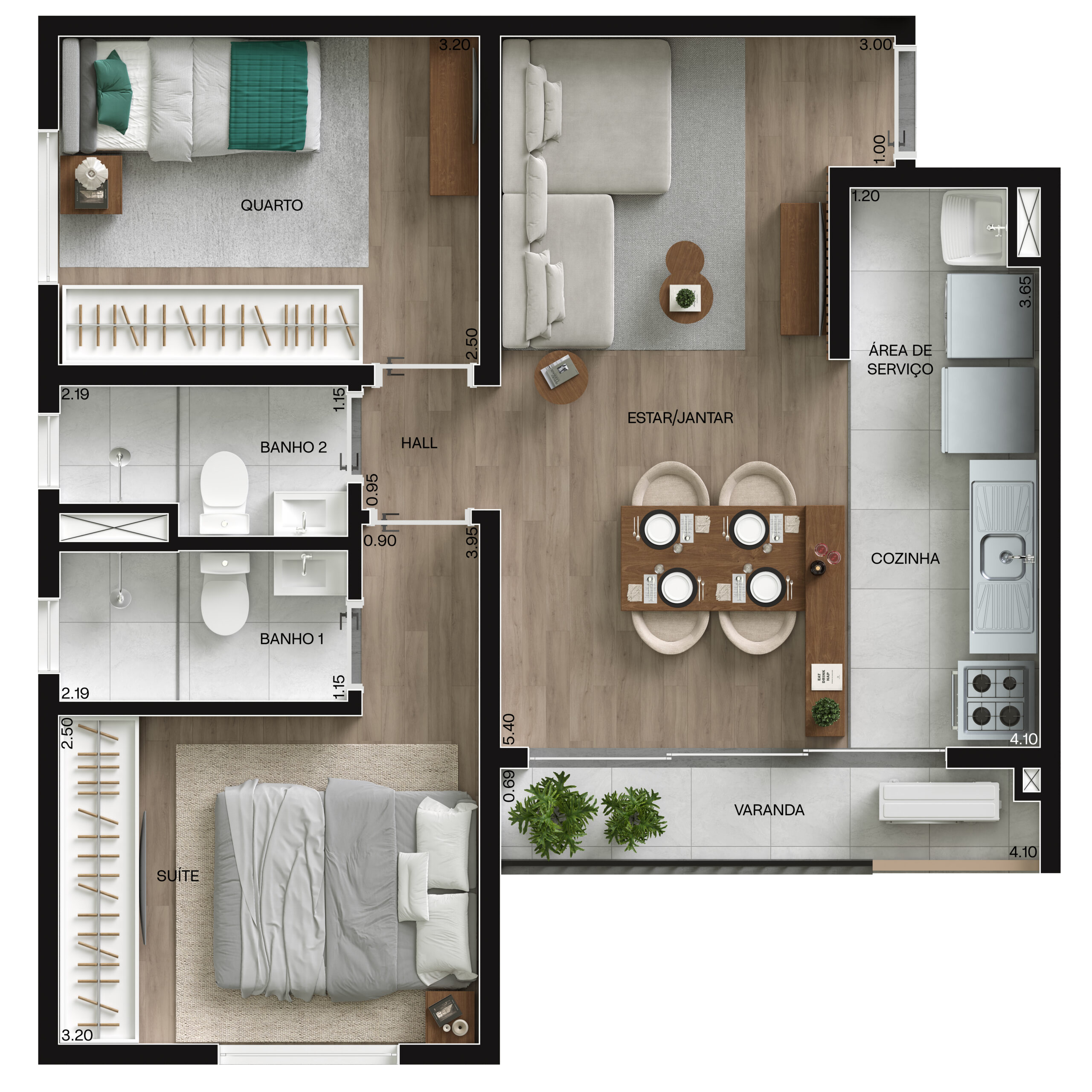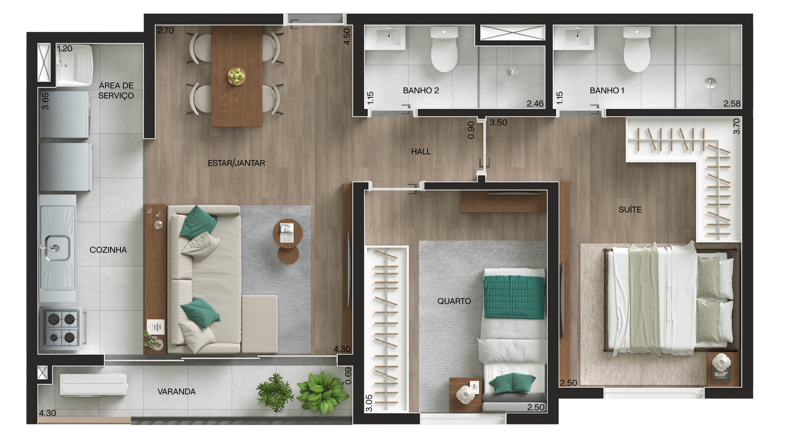2Q com suíte e varanda